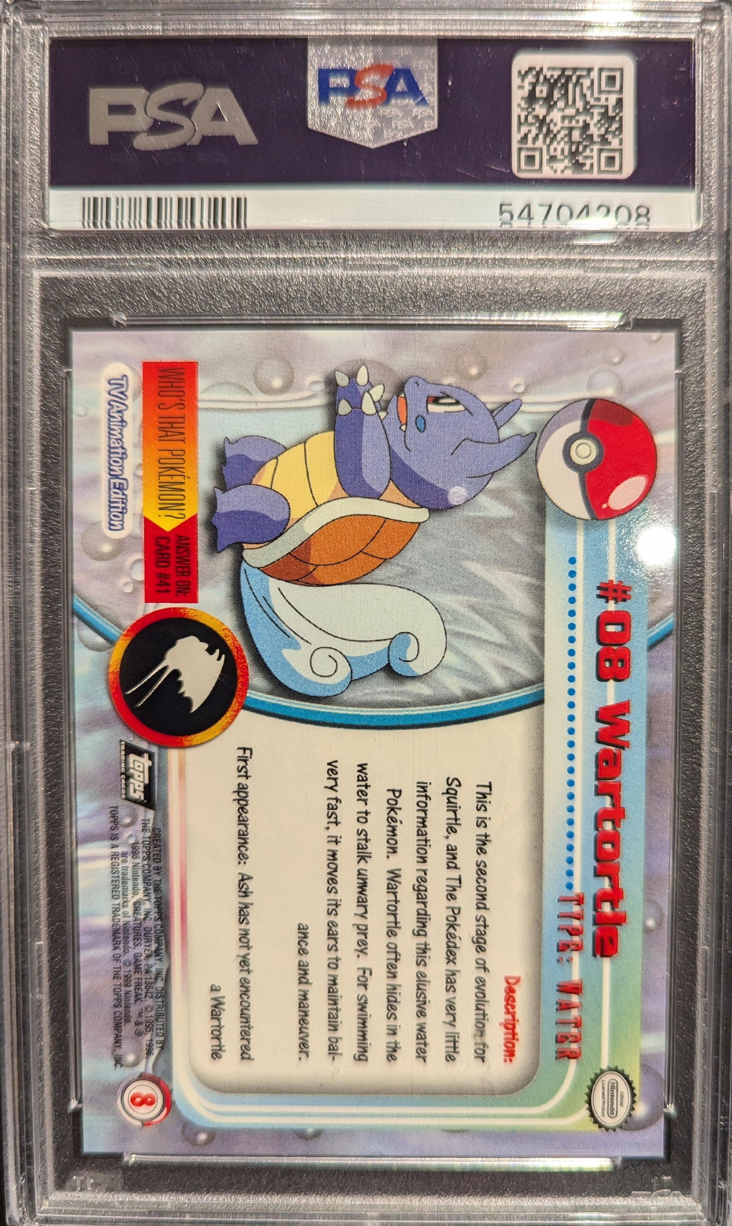 Pokemon TCG Graded Card: 1999 Wartortle TV #008 English PSA 9