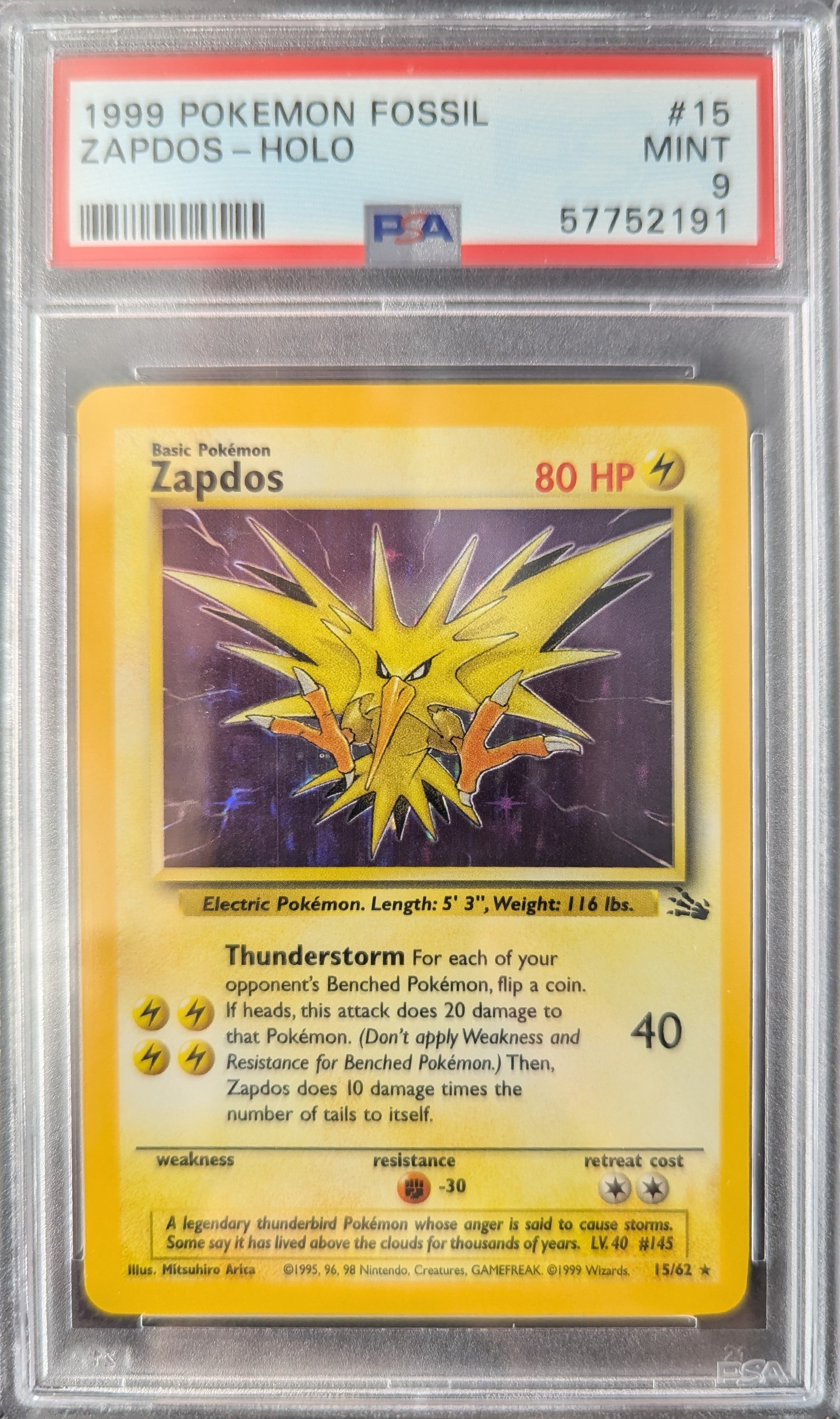 Pokemon TCG Graded Card: 1999 Zapdos #015 PSA 9