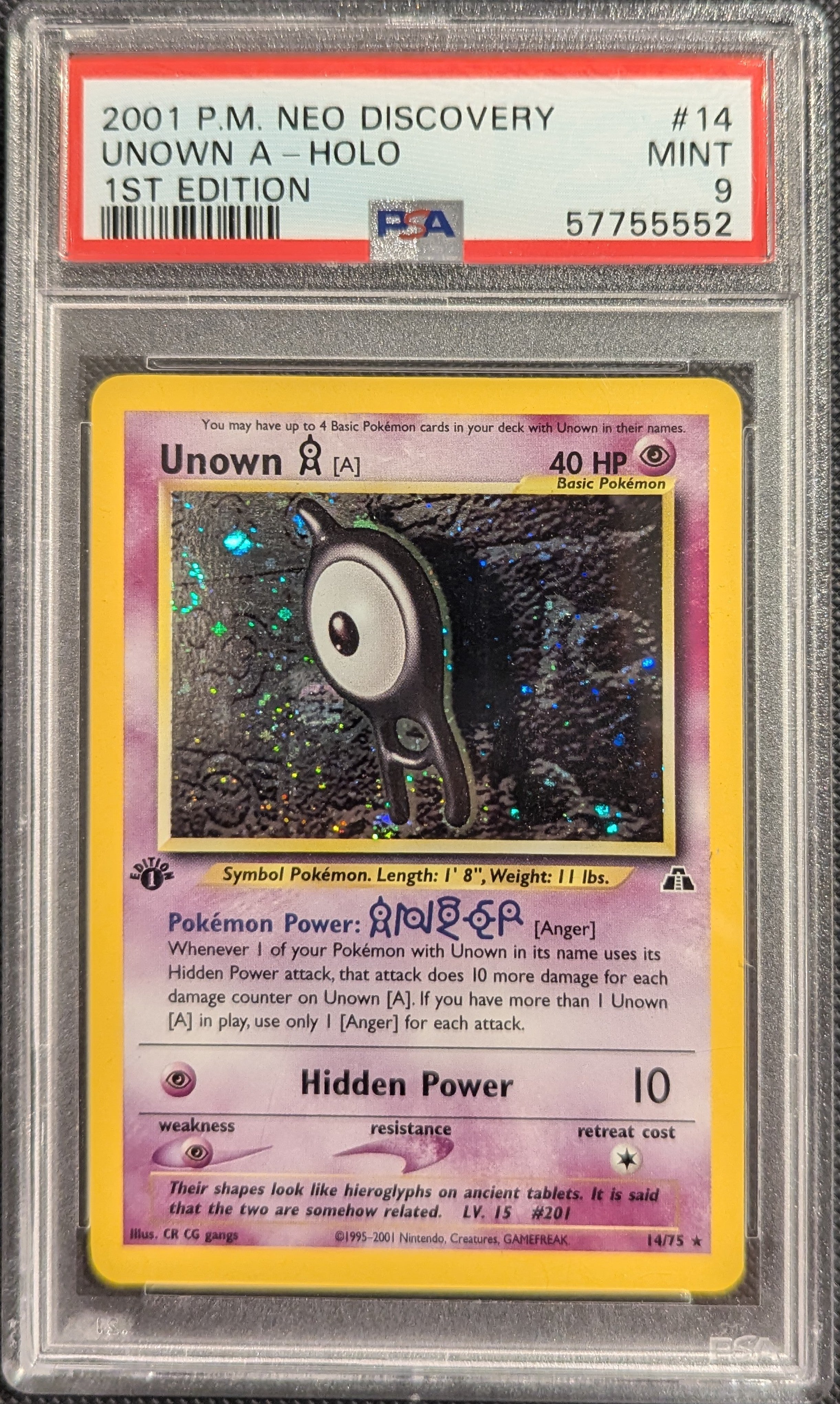 Pokemon TCG Graded Card: 2001 Unown A 1st Edition #014 English PSA 9