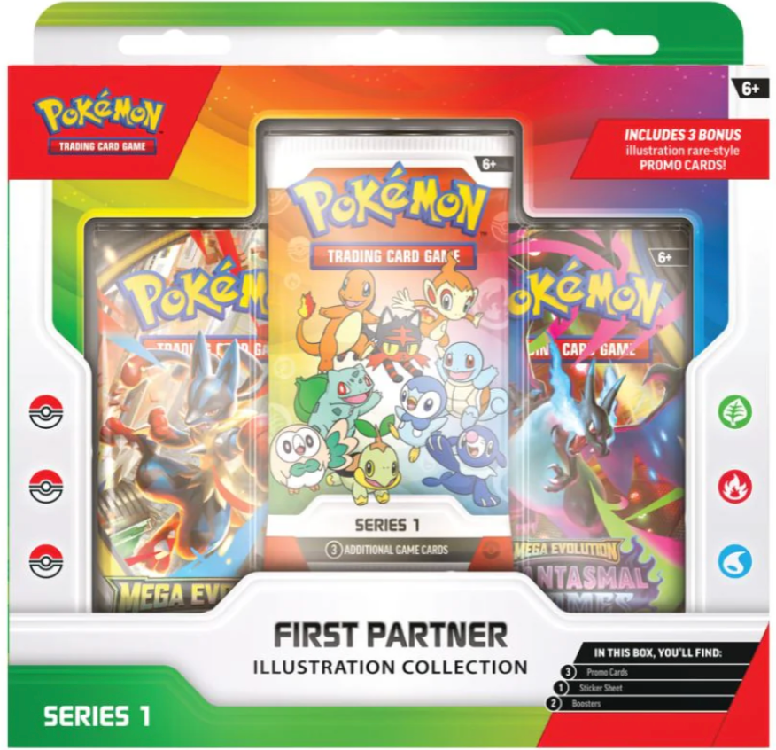 The Pokémon TCG: First Partner Illustration Collection—Series 1 includes: